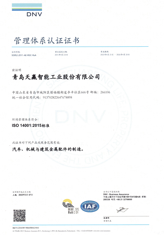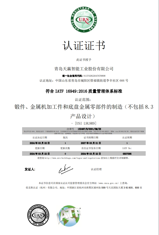 青島天贏智能工業(yè)股份有限公司成立于1997年,是一家專注于生產(chǎn)汽車配件為主的高新技術(shù)企業(yè),公司集同步研發(fā),智能制造,一體化;營銷為一體,20年來產(chǎn)品暢銷并享譽(yù)世界各地廣泛,應(yīng)用于航空,汽車,工程機(jī)械,精密儀器等高端工業(yè)領(lǐng)域。